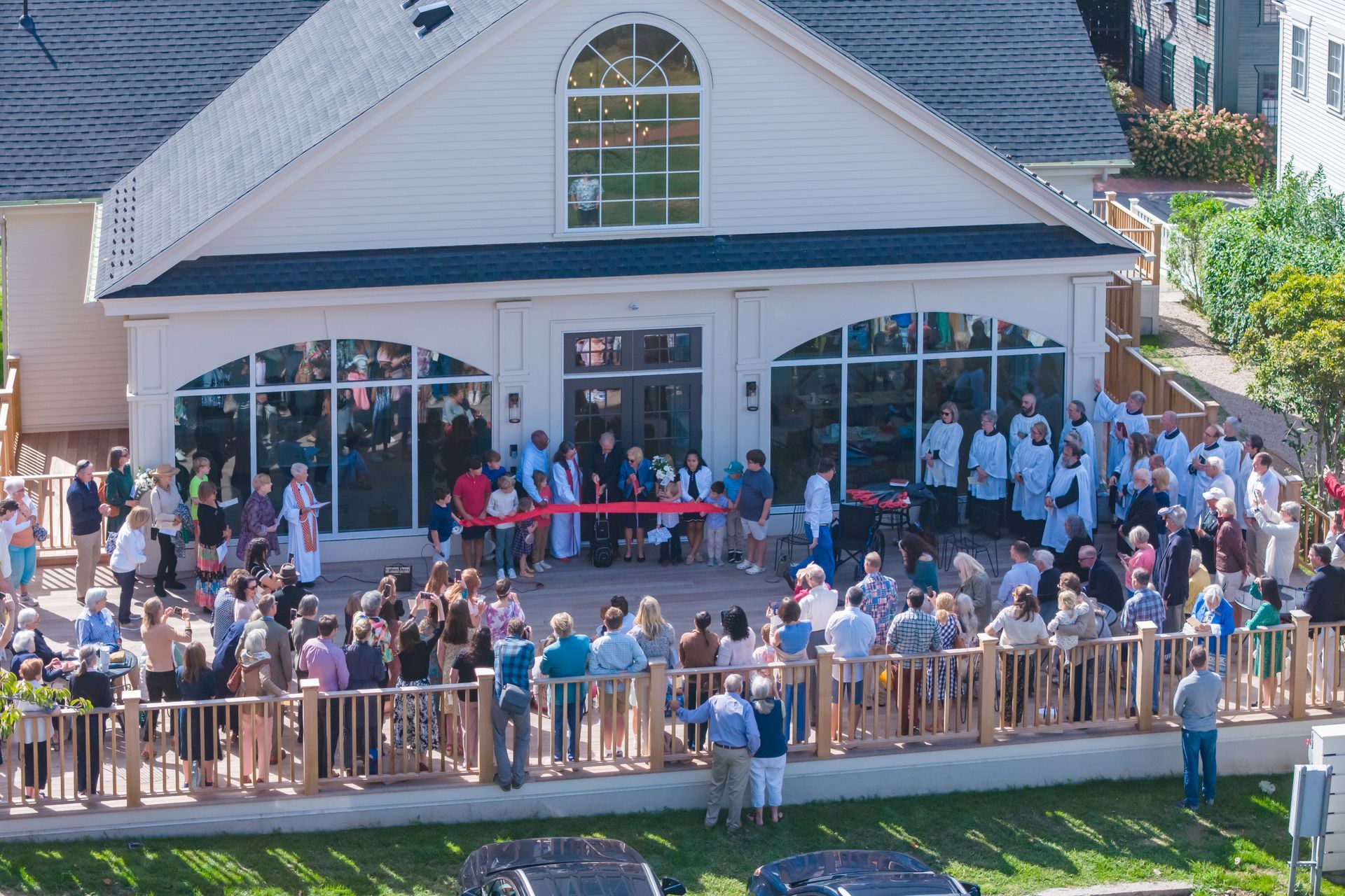 In September, the congregation gathered on the deck of the Glenn Family Center for a dedication and ribbon cutting ceremony. This building completes the Trinity campus, providing space for youth and adult programming, and reducing wear and tear on Honyman Hall. It is our vision that the new building allow our community outreach to grow and thrive in Newport.